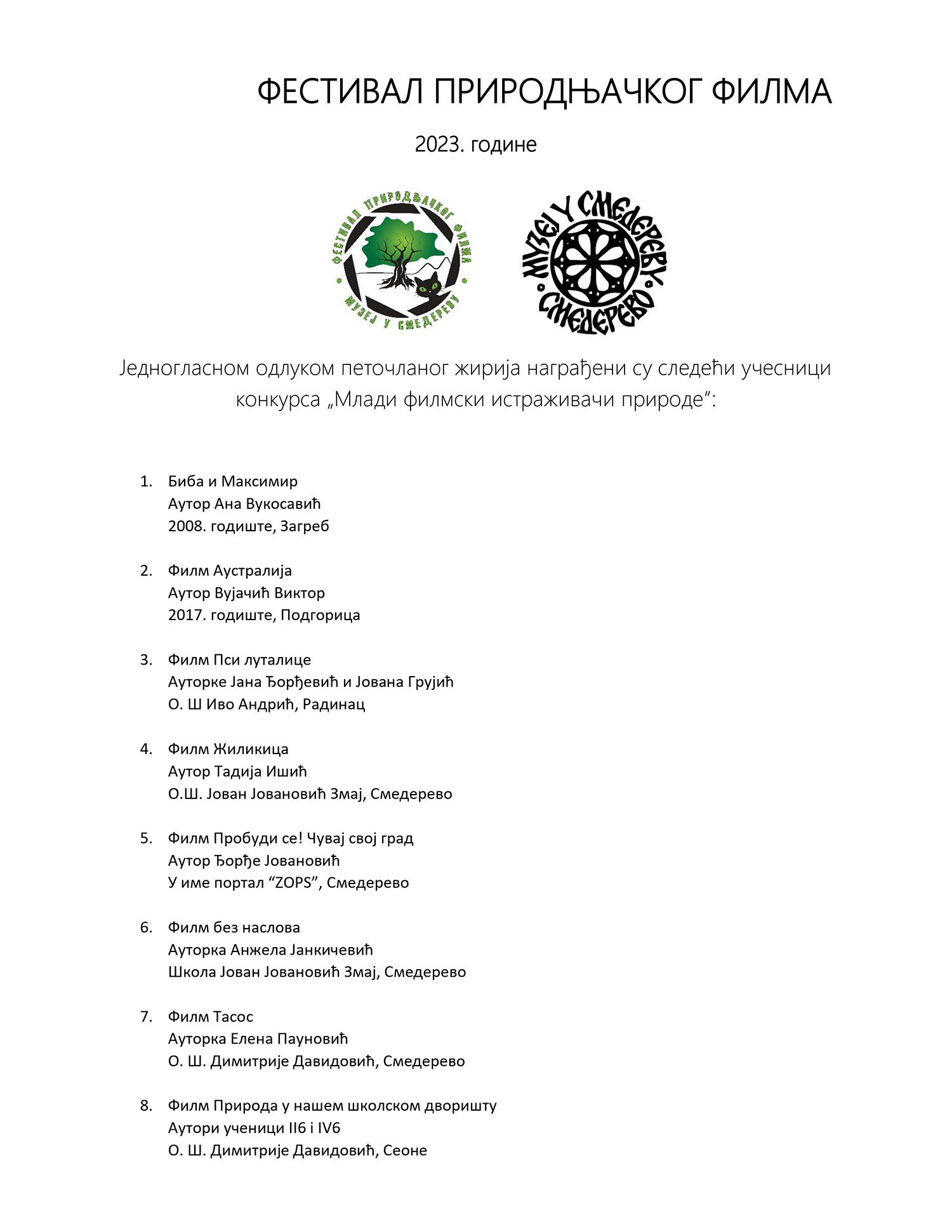 ФЕСТИВАЛ ПРИРОДЊАЧКОГ ФИЛМА 2023