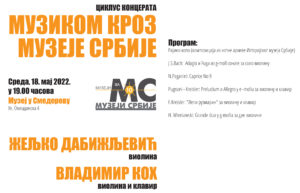 Први концерт новог циклуса биће одржан током предстојеће манифестације „Музеји за 10” у среду 18. маја 2022. у Музеју у Смедереву са почетком од 19 часова.